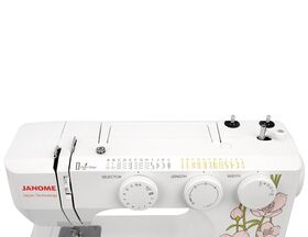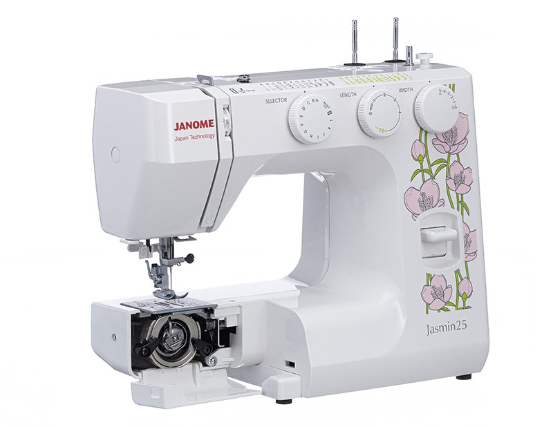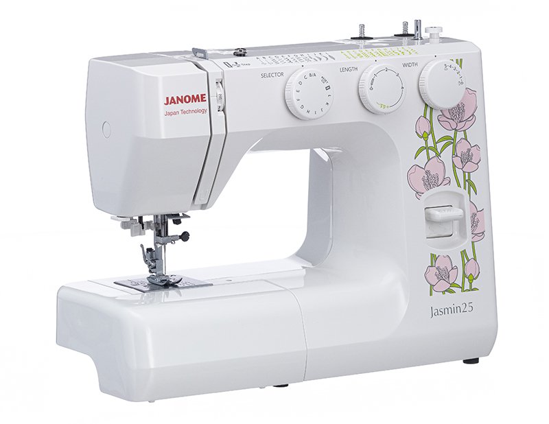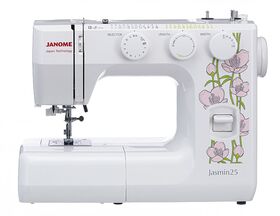 Электромеханическая швейная машина Janome Jasmin25 привлекает внимание нежным цветочным дизайном и отличным функционалом. Эта модель с вертикальным челноком, которая легко шьёт все виды тканей от шифона до джинсы. Встроенный нитевдеватель облегчает заправку нити в иглу. На Janome Jasmin25 вы сможете легко выставлять нужные вам настройки: таблица строчек удобно располагается на уровне глаз рядом с регуляторами выбора строчек, длины и ширины стежка. Широкий выбор швейных операций позволяет пришить резинку с помощью эластичного зигзага, обработать края потайными или оверлочными строчками, усиленной трикотажной строчкой шить ткани стрейч, работать в технике пэчворк, используя декоративные строчки. Петля выполняется в автоматическом режиме под нужный размер пуговицы. С Janome Jasmin25 вы сможете быстро и комфортно справиться с любыми швейными работами.