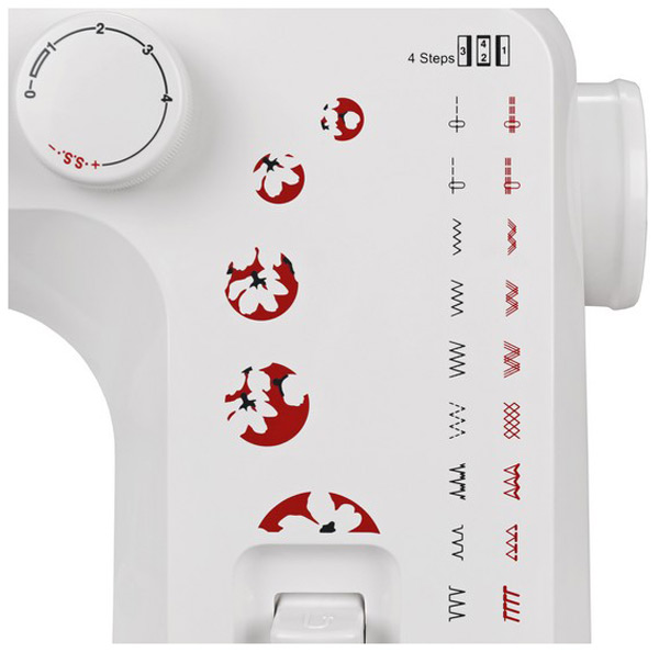 зигзаг; оверлочные строчки; прямая строчка (центральное положение иглы); потайная строчка; мережка; эластичная строчка; эластичная потайная строчка