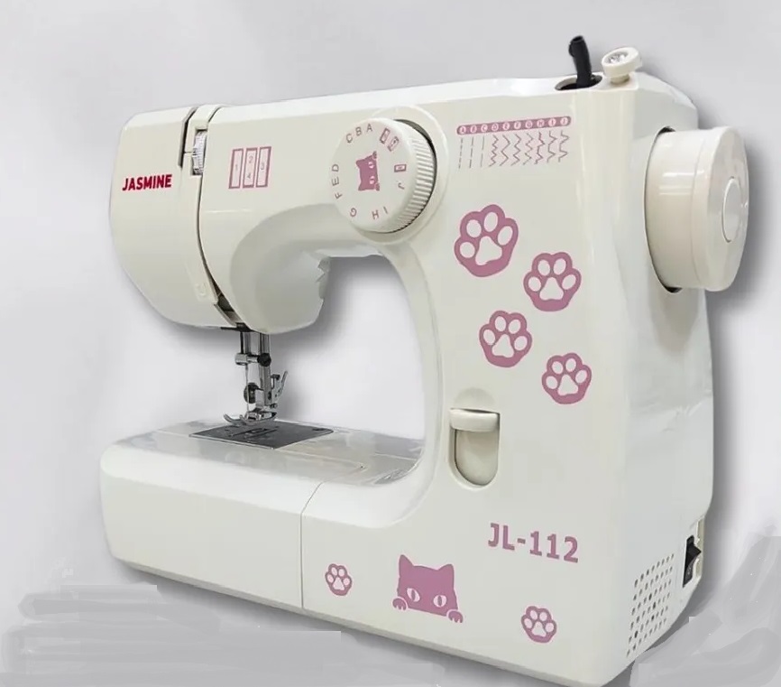JASMINE JL-112 - электромеханическая швейная машина, которая отлично подойдёт для новичка и для тех, кому нужна простая швейная машинка дома или дачи. Jasmine JL-112 выполняет 12 основных швейных операций, включая обметочные строчки, стежки для трикотажных тканей и петлю за 4 шага. Чтобы изменить длину строчки, прокрутите регулятор, который расположен наверху корпуса. Для шитья в обратном направлении, для штопки и закрепки предусмотрена клавиша реверс. Дополнительный подъём лапки позволит шить многослойные изделия. Узкие детали, детскую одежду можно обработать при помощи съёмного рукава. Jasmine JL-112 станет надёжной помощницей в первых шагах шитья и рукоделия.