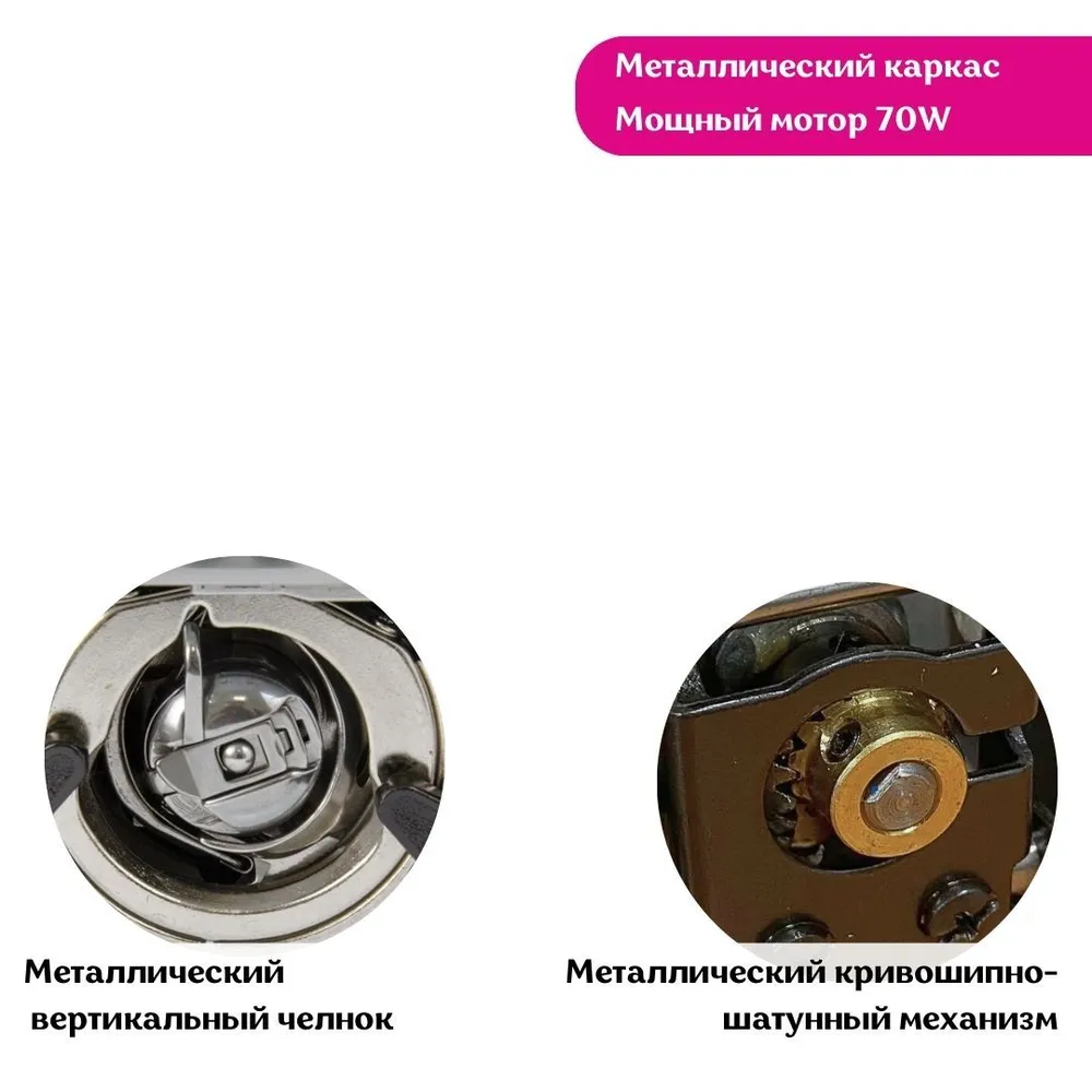 Вид строчки: Декоративная строчка, Зигзаг, Петля-полуавтомат, Прямая строчка, Потайная строчка