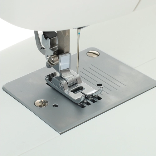 Швейная машина обладает эргономичным корпусом, обеспечивающим оптимальный угол обзора и легкую подачу ткани.