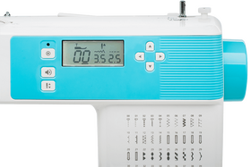 На дисплее управления отображаются все режимы работы машины: тип строчки, ширина и длина стежка, тип используемой лапки, положение иглы, реверс/закрепка шва, необходимость использования рычага обметывания петель, режим намотки шпульки.