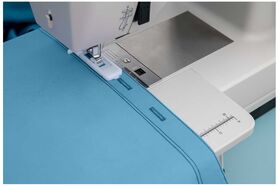 При шитье объемных изделий для увеличения рабочей поверхности и работы в стиле квилтинга установите дополнительный столик. На столик нанесена линейка для быстрых измерений