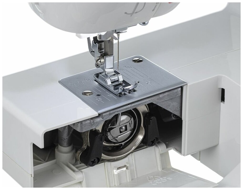 Электромеханическая швейная машинка с вертикальным челноком порадует качественным функционалом и минималистичным дизайном корпуса, и станет незаменимым помощником в воплощении ваших творческих идей.