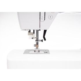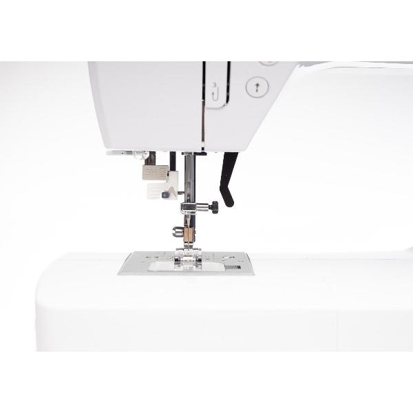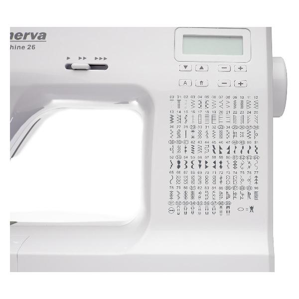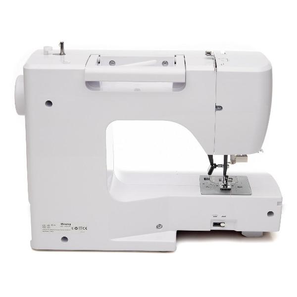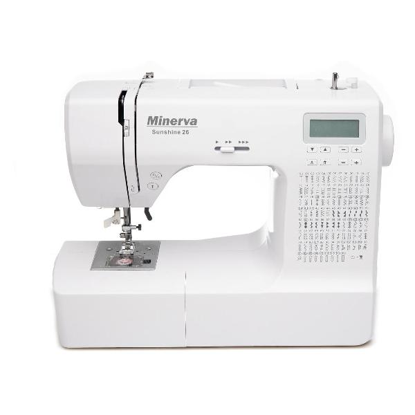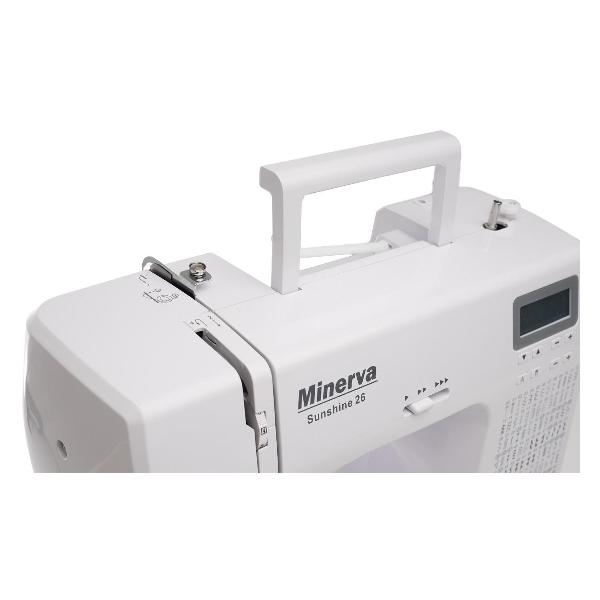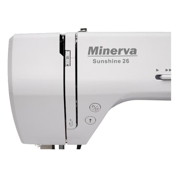 Белая швейная машина Minerva M-Sun26 с горизонтальным челноком выполняет до 200 различных операций (10 видов рабочих строчек). В комплектацию входят четыре лапки, три шпульки, набор игр, вспарыватель, отвертки, щеточка для чистки и чехол для хранения. Корпус оснащен съемной рукавной платформой. Длина стежка варьируется до 5 мм. Длина сетевого шнура — 1,5 м. Габариты изделия — 30х35х20 см. Вес модели — 5,1 кг. Мощность устройства — 36 Вт. Способ размещения катушки — вертикальный/горизонтальный. Корпус сделан из EVA/пластика. Присутствует отсек для хранения аксессуаров, ручка для переноски.