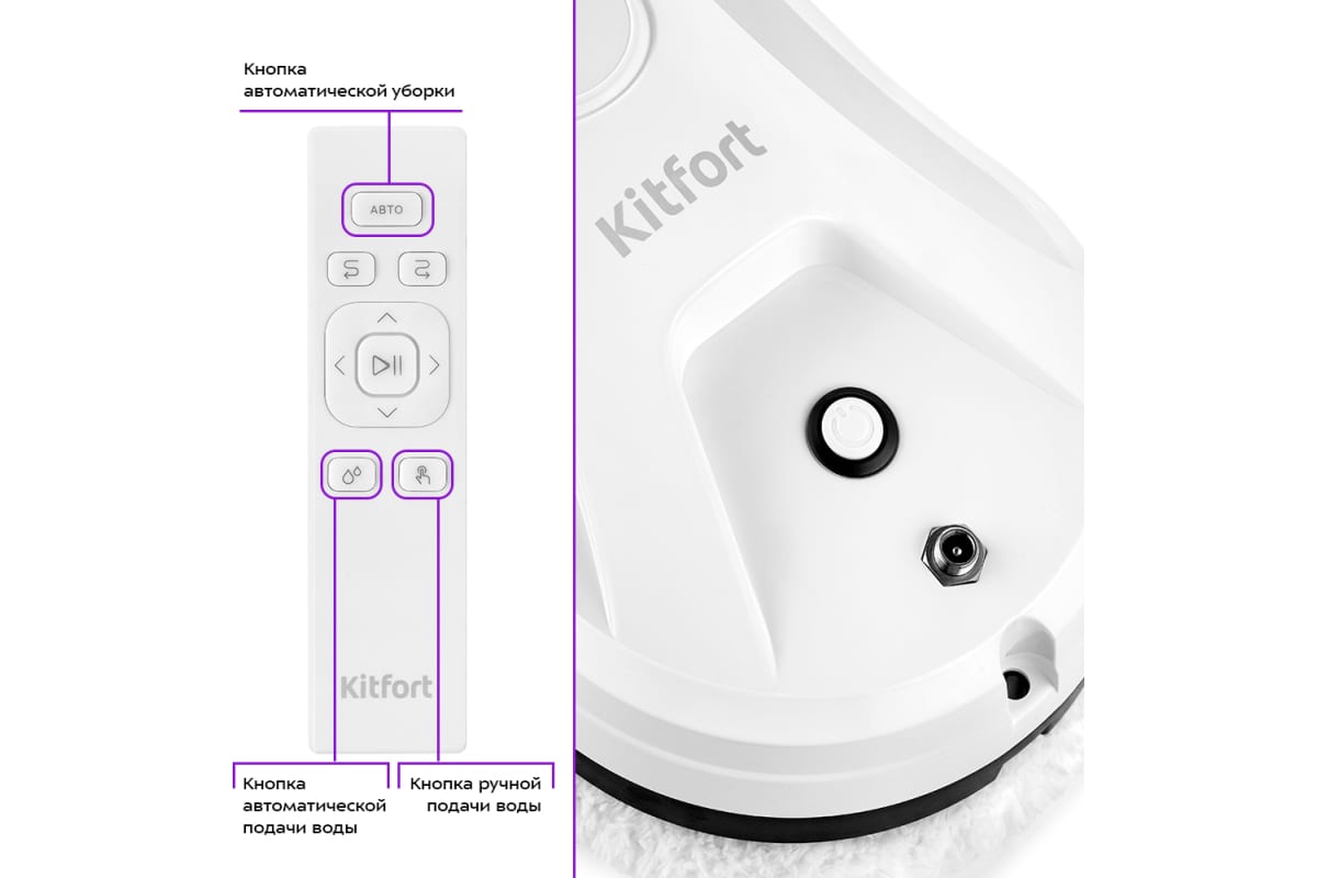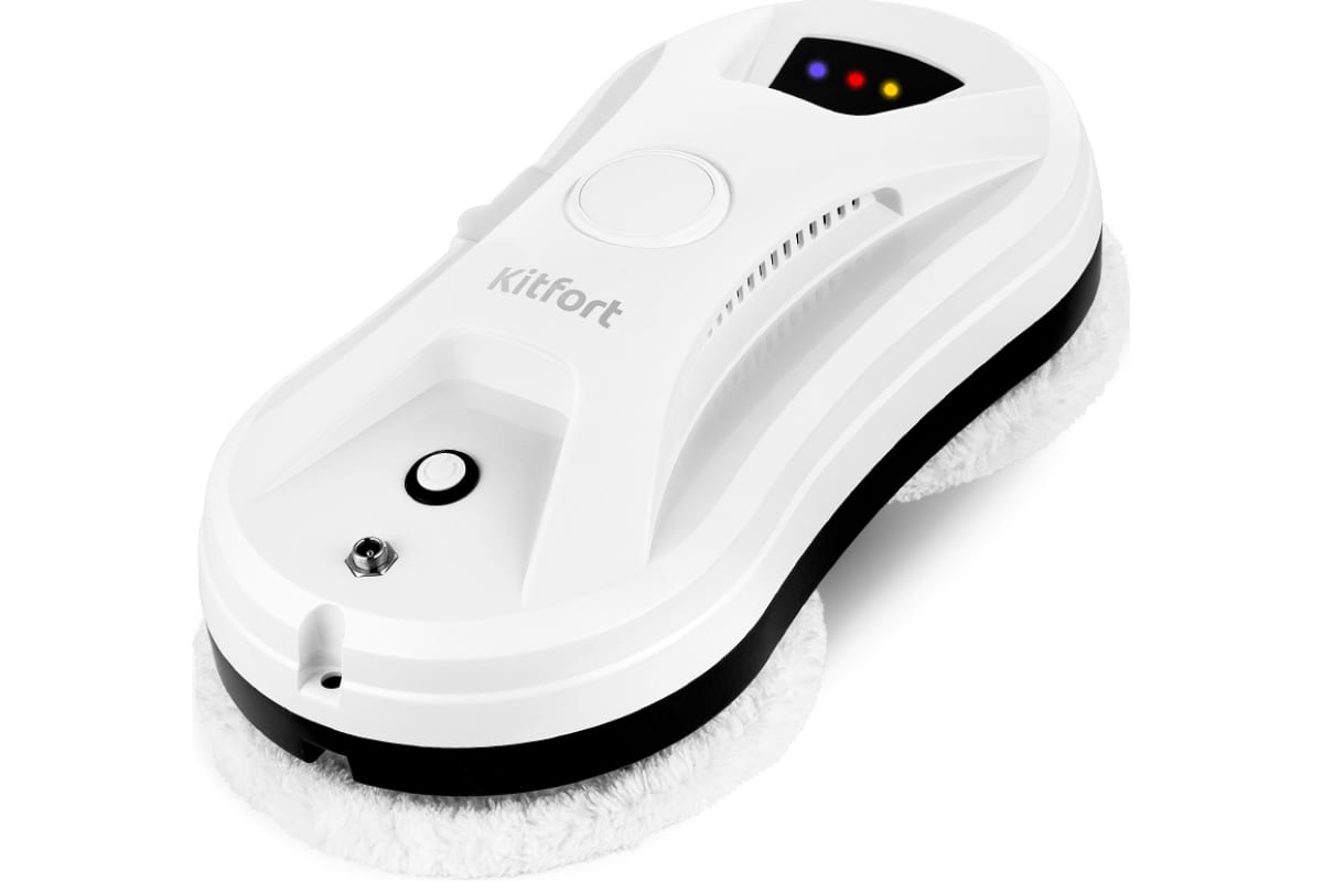 Робот КТ-5181 предназначен для мытья стекол, кафельных и зеркальных покрытий. Робот оснащен вентилятором, который создает разрежение, и робот удерживается на гладкой вертикальной поверхности. К двум держателям тряпок, которые находятся на дне робота, крепятся чистящие тряпки, которые идут в комплекте. Тряпки увлажняют, оттирают и впитывают грязь.
