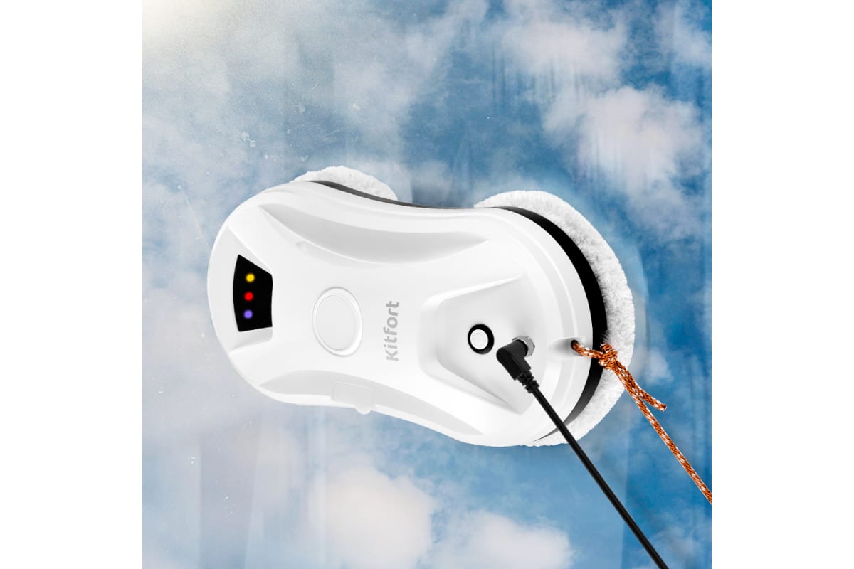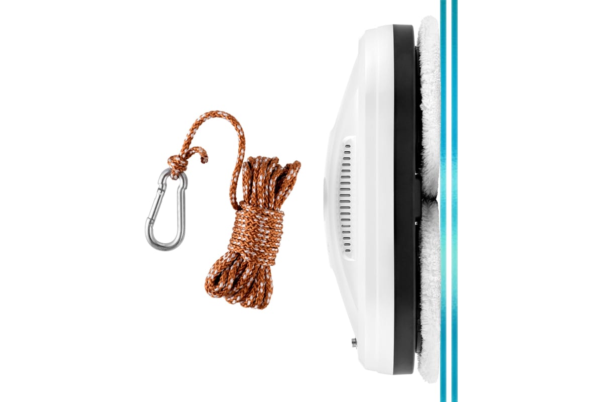 Прибор укомплектован страховочным тросом и удлинителем сетевого шнура, поэтому вы можете использовать робот для высоких или широких окон.