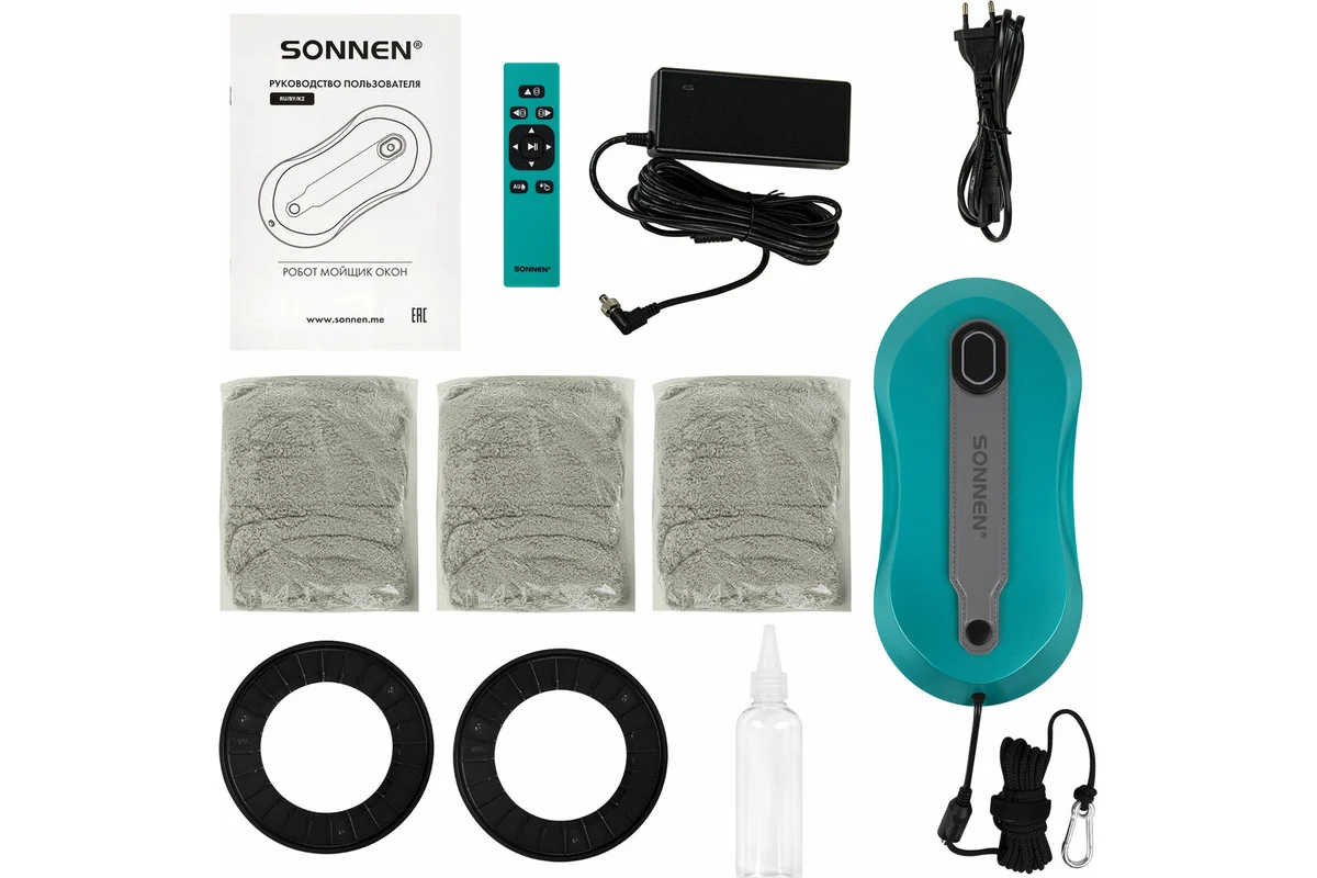 Робот-мойщик окон SONNEN Tech RWC-124 DUAL SPRAY не только сделает окна чистыми, но и обеспечит безопасность. Теперь не придется рисковать и мыть окна снаружи, робот с легкостью очистит все труднодоступные места за вас. Мощности в 72 Вт достаточно, чтобы робот смог очистить 1 м2 за 3 минуты.