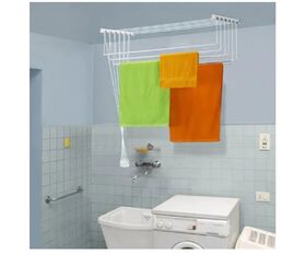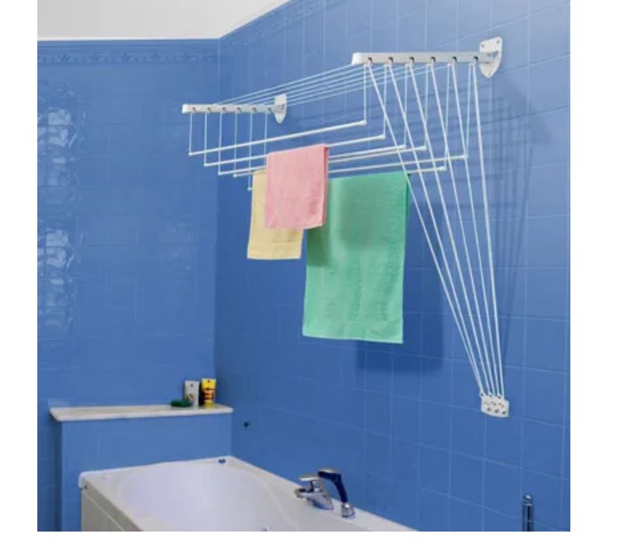 Сушилка для белья Gimi Lift позволяет сушить белье в ванной, на балконе, в комнате или другом удобном месте, без потери свободного пространства. Эта модель – настенная и потолочная: сама конструкция крепится к стене под потолком, а для подъема и опускания сушилки есть специальная штанга.