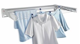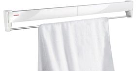 В маленьких комнатах, таких как ванная, едва ли найдется место для большой сушилки? Тогда выдвижная настенная сушильная машина Telegant 81 Protect Plus от Leifheit — правильный выбор. Сушильную машину можно закрепить непосредственно на стене с помощью прилагаемых крепежных материалов. В сложенном виде он впечатляет своим вневременным внешним видом и встроенным хромированным полотенцесушителем. В разложенном виде раскладываются восемь сушильных стержней шириной 90 см каждый. Они обеспечивают сушку всей загрузки стиральной машины. Настенная сушильная машина Leifheit имеет высокую грузоподъемность, поэтому можно легко сушить даже тяжелые душевые полотенца. Компактная настенная сушильная машина, подходящая для балкона или ванной комнаты. В выдвинутом состоянии настенная сушилка обеспечивает общую длину сушки 8,10 м и, следовательно, достаточно места для белья.