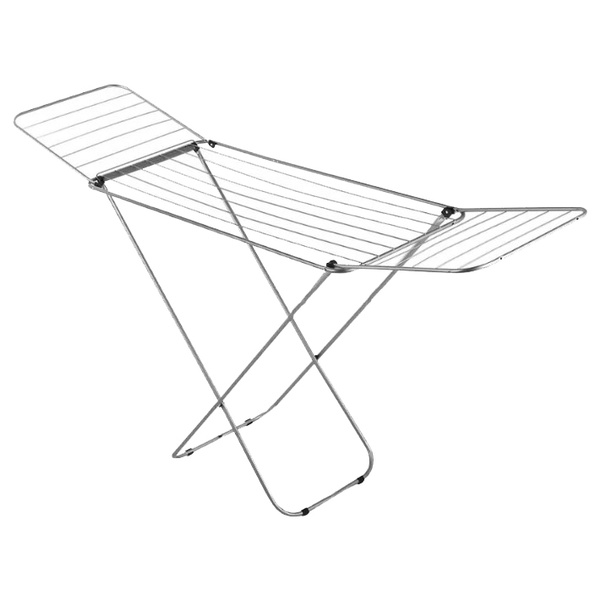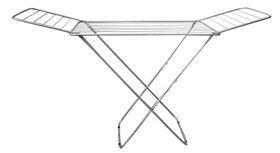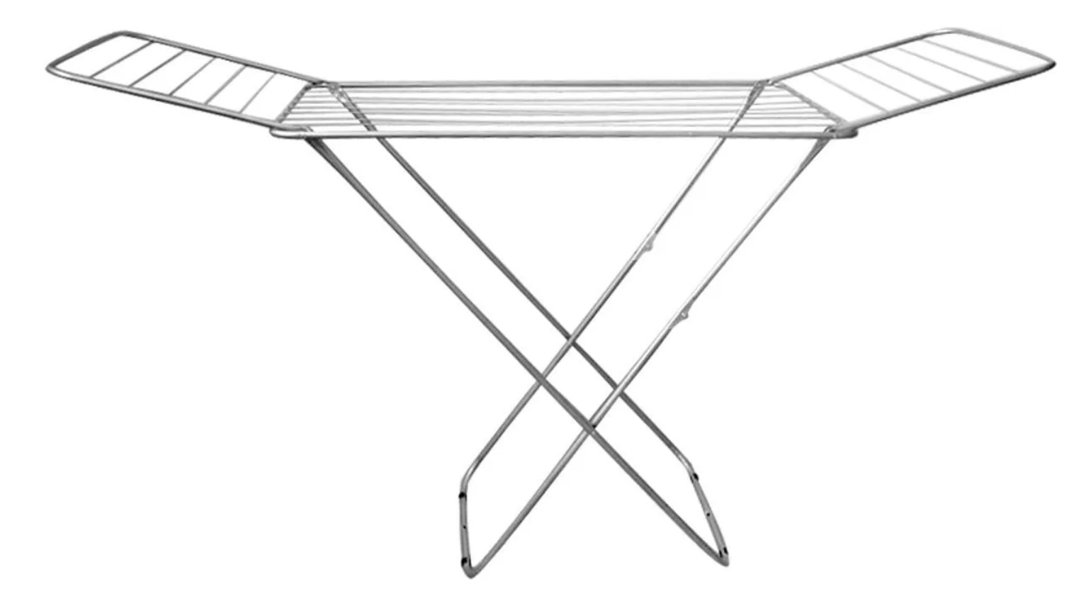 Большая напольная сушилка белья и одежды длиной 16метров. В работе задействованы не только верхние полотна крылья, но также есть нижняя полка для мелких вещей.