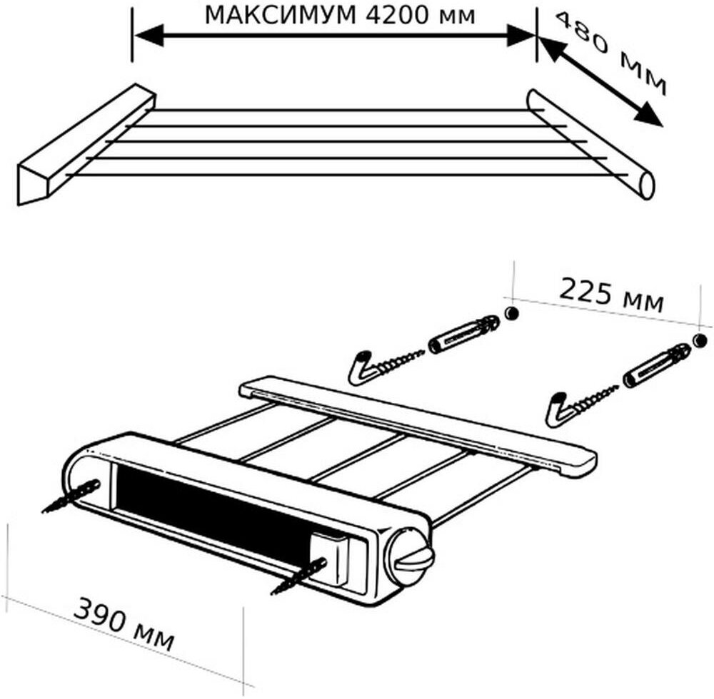 Сушилка имеет 5 веревок длиной 4.2 м;