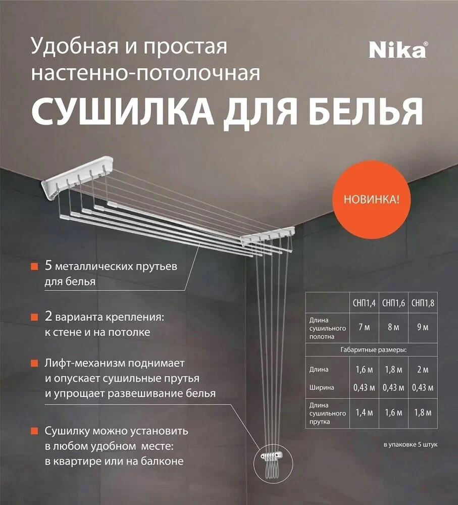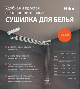 Настенно-потолочная сушилка Nika 7м СНП 1.4 белая НИКА-СНП1.4/БЕЛАЯ предназначена для сушки белья в помещении.