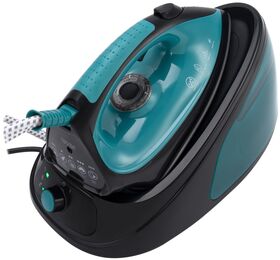 Парогенератор HYUNDAI H-SS01225 черный/синий. Парогенератор Hyundai H-SS01225 ‒ мощный и удобный прибор для бережного ухода за вещами. Он подходит для любых типов тканей, легко справляется с глубокими складками при постоянной подаче пара 80 г/мин. Благодаря функции парового удара вещи даже из плотных тканей обретают прилежный вид.