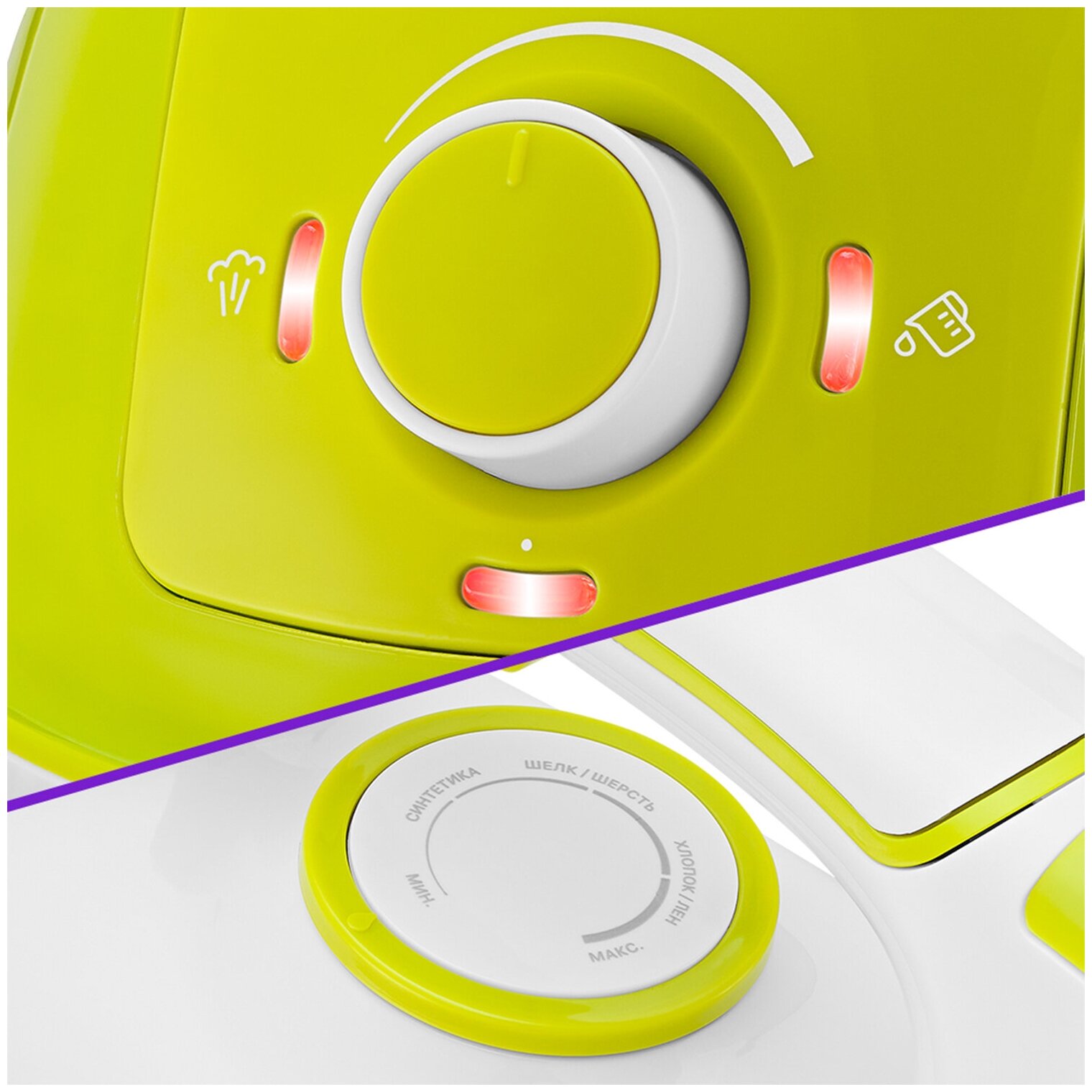 Терморегулятор утюга предназначен для установки температуры подошвы утюга в зависимости от типа ткани. На корпусе паровой станции есть регулятор интенсивности подачи пара. Там также отображается индикация работы прибора.