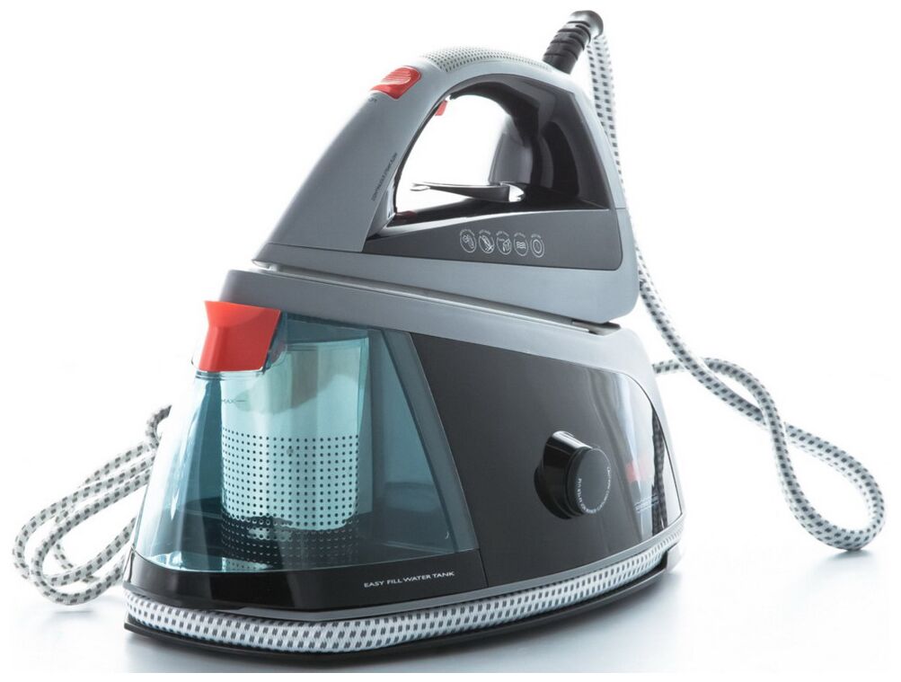 Эта модель отличается от других утюгов с парогенератором бойлерной системой образования пара, мощным паровым ударом (6,5 Бар), вместительным бойлером (1 л), съемным резервуаром для воды (1 л), возможностью отпаривать вертикально, качественной сборкой и износостойкостью.