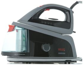 Подошва утюга парогенератора MIE Assistente di Vapore сделана из керамики. На его ручке сверху расположена кнопка переключения режимов подачи пара (постоянный/кратковременный). Под ручкой есть курок для кратковременной подачи пара. Все эти детали делают процесс глажения вещей максимально комфортным, быстрым и эффективным.