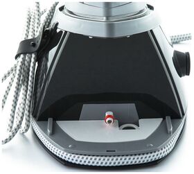 Парогенератор оснащен съемным резервуаром для воды (его объем - 1 л). Такого запаса воды хватает примерно на 30 минут беспрерывной работы. В случае, если вы хотите гладить дольше, просто вытащите съемный резервуар, наполните его водой и продолжайте гладить. По обеим сторонам резервуара парогенератора расположены ручки для удобной переноски прибора, а сам парогенератор размещается на специальной подставке.