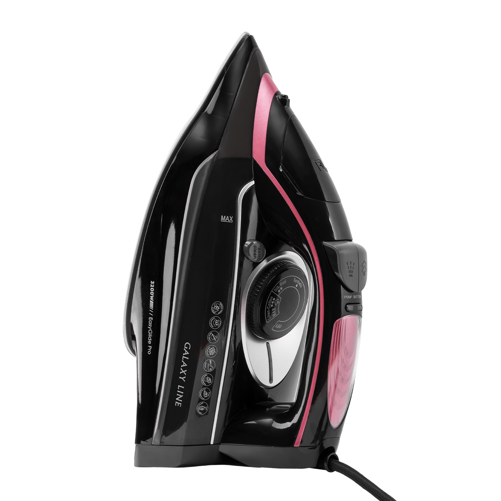 Утюг GALAXY LINE GL6141 выделяется встроенным сенсорным парогенератором, который обеспечивает подачу пара до 90 г/мин и мощный паровой удар до 260 г/мин, легко разглаживая даже плотные ткани.