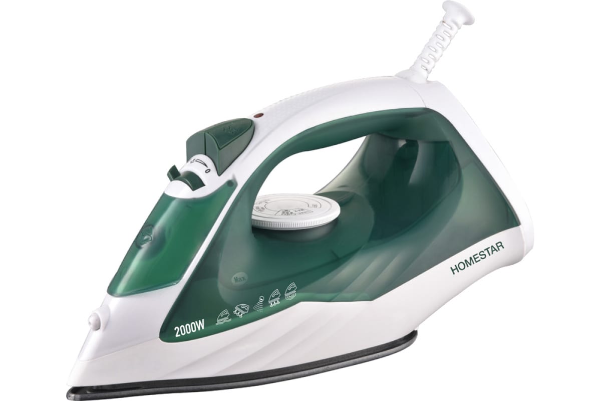 Утюг Homestar hs-4008 бело-зеленый 2200 Вт, пар, тефлоновая подошва, антинакипь 105375 предназначен для глажения белья, домашнего текстиля, одежды.