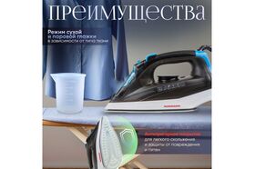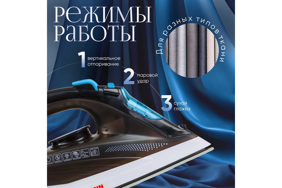 Имеет режим сухого глажения и глажения с паром, благодаря чему практичен в использовании.