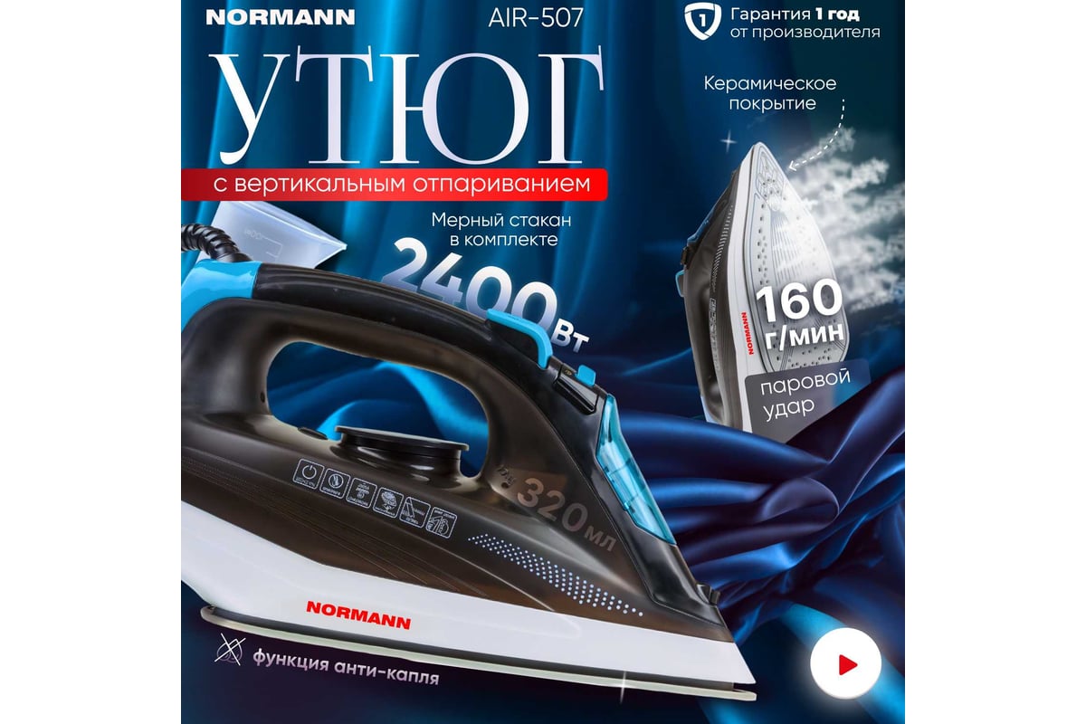 Электрический утюг NORMANN AIR-507 предназначен для бытового использования.