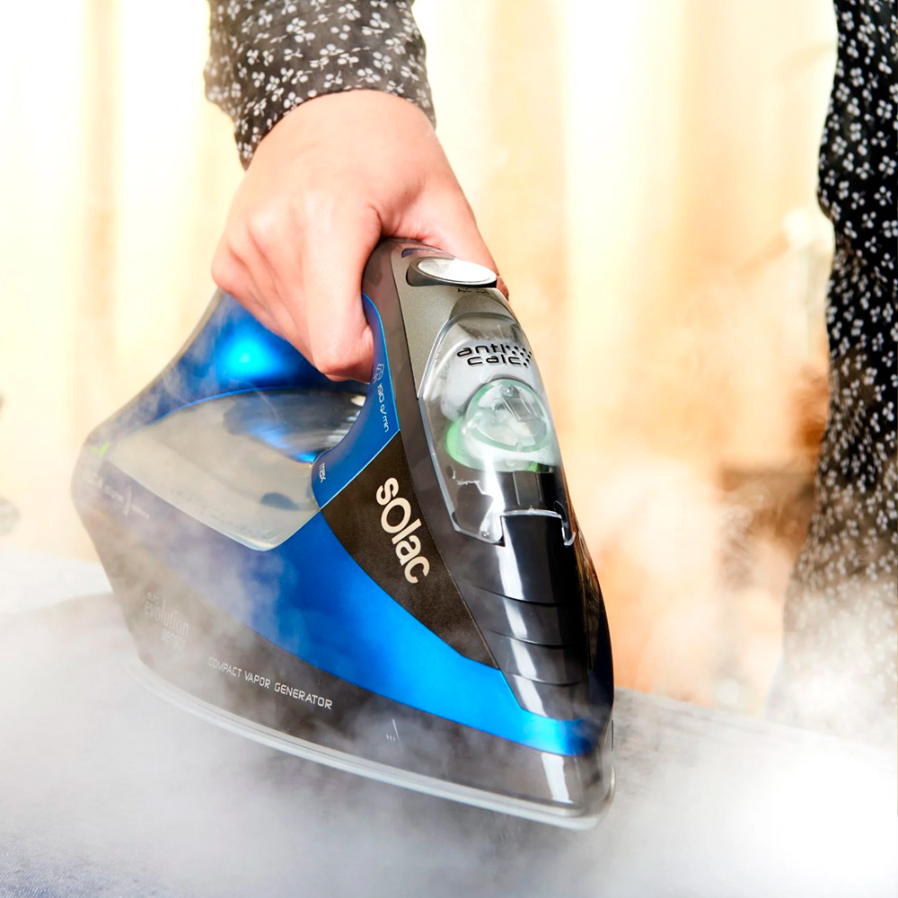 Для более быстрого и комфортного глажения утюг Solac оснащён сенсорной технологией — инновационной технологией, которая активирует подачу пара автоматически прикосновением руки, без необходимости нажимать кнопки.