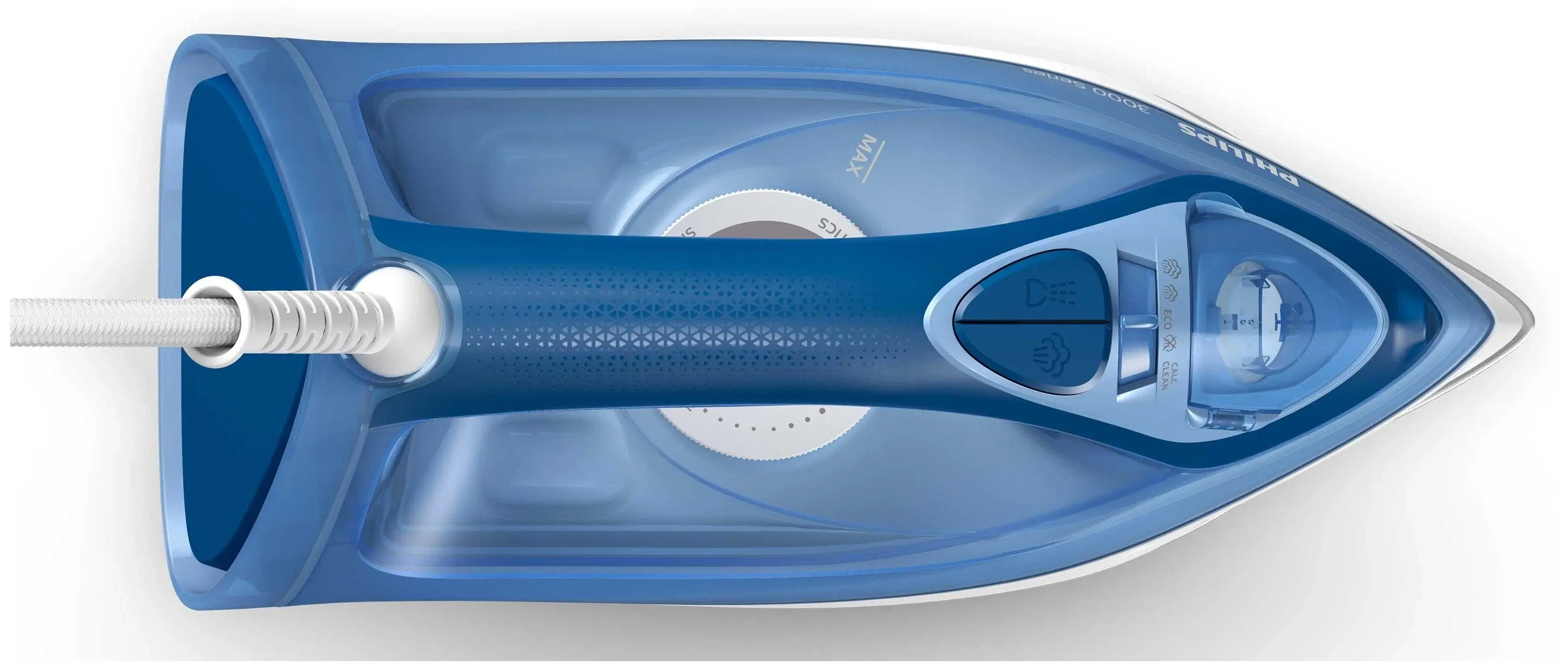 Паровой утюг серии 3000 позволяет легко разглаживать даже жесткие складки благодаря мощной подаче пара. Керамическая подошва обеспечивает гладкое скольжение, а резервуара для воды 300 мл хватит для глажения небольшой стопки вещей даже без пополнения.