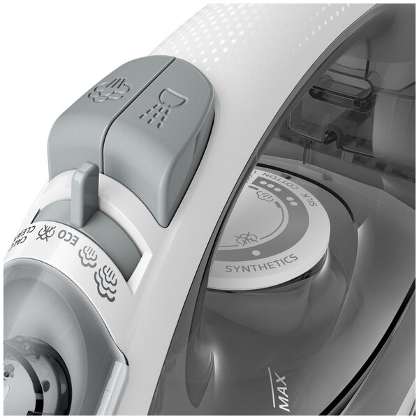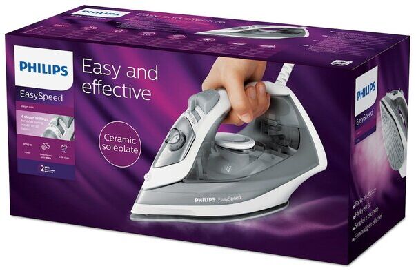 Утюг EasySpeed обеспечивает простое и эффективное глажение: большое количество пара разглаживает жесткие складки, керамическая подошва обеспечивает превосходное скольжение на любых тканях и отсутствие царапин, а функция очистки от накипи Calc Clean повышает надежность прибора.