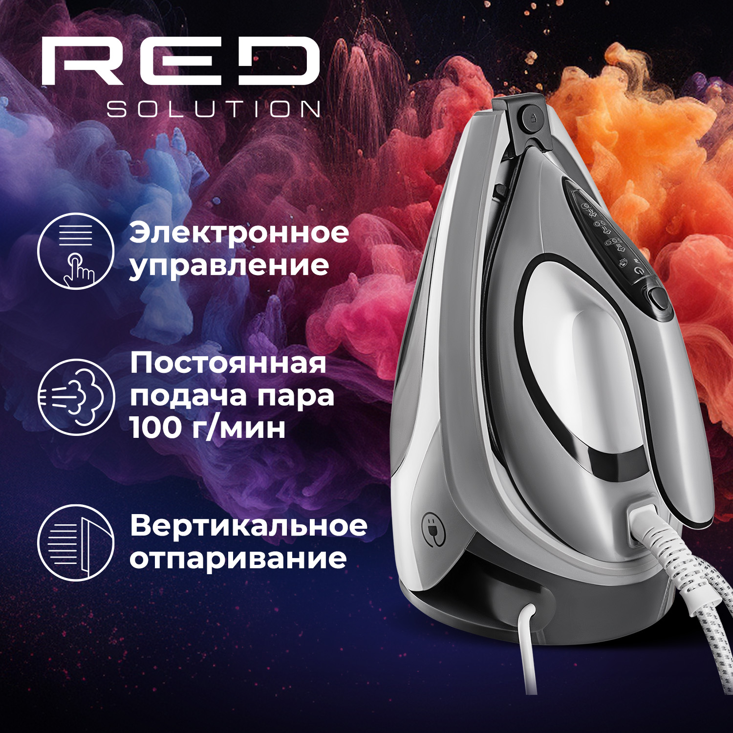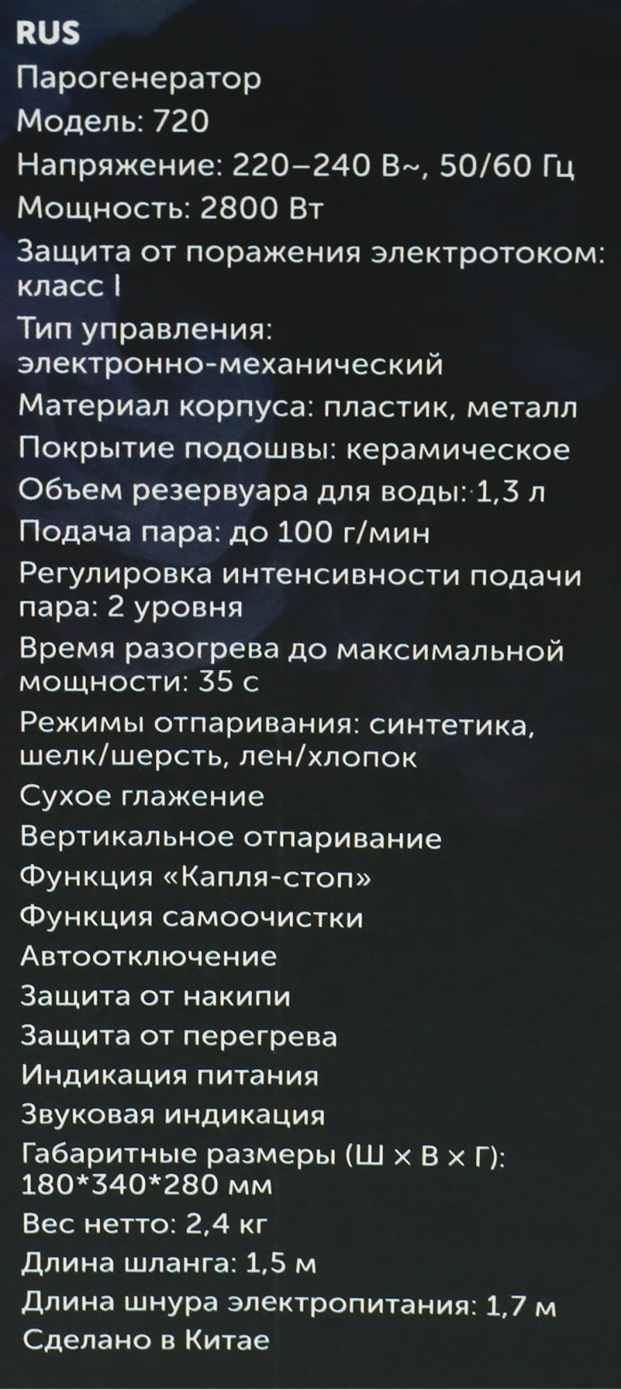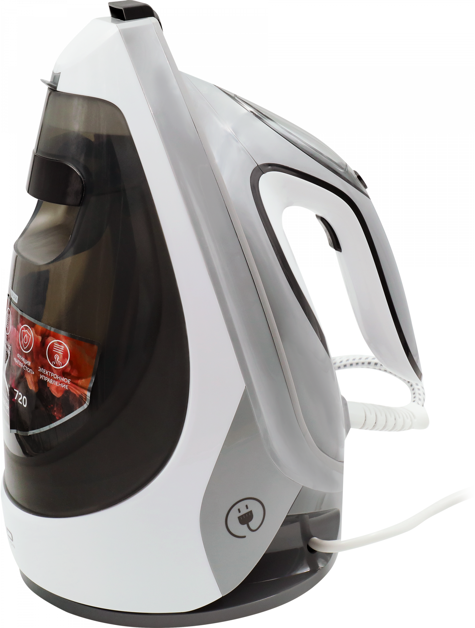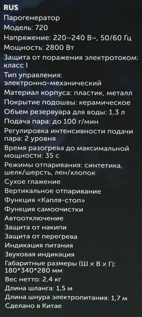 автоматическое отключение; желобок для пуговиц; противокапельная система; система защиты от накипи; система самоочистки