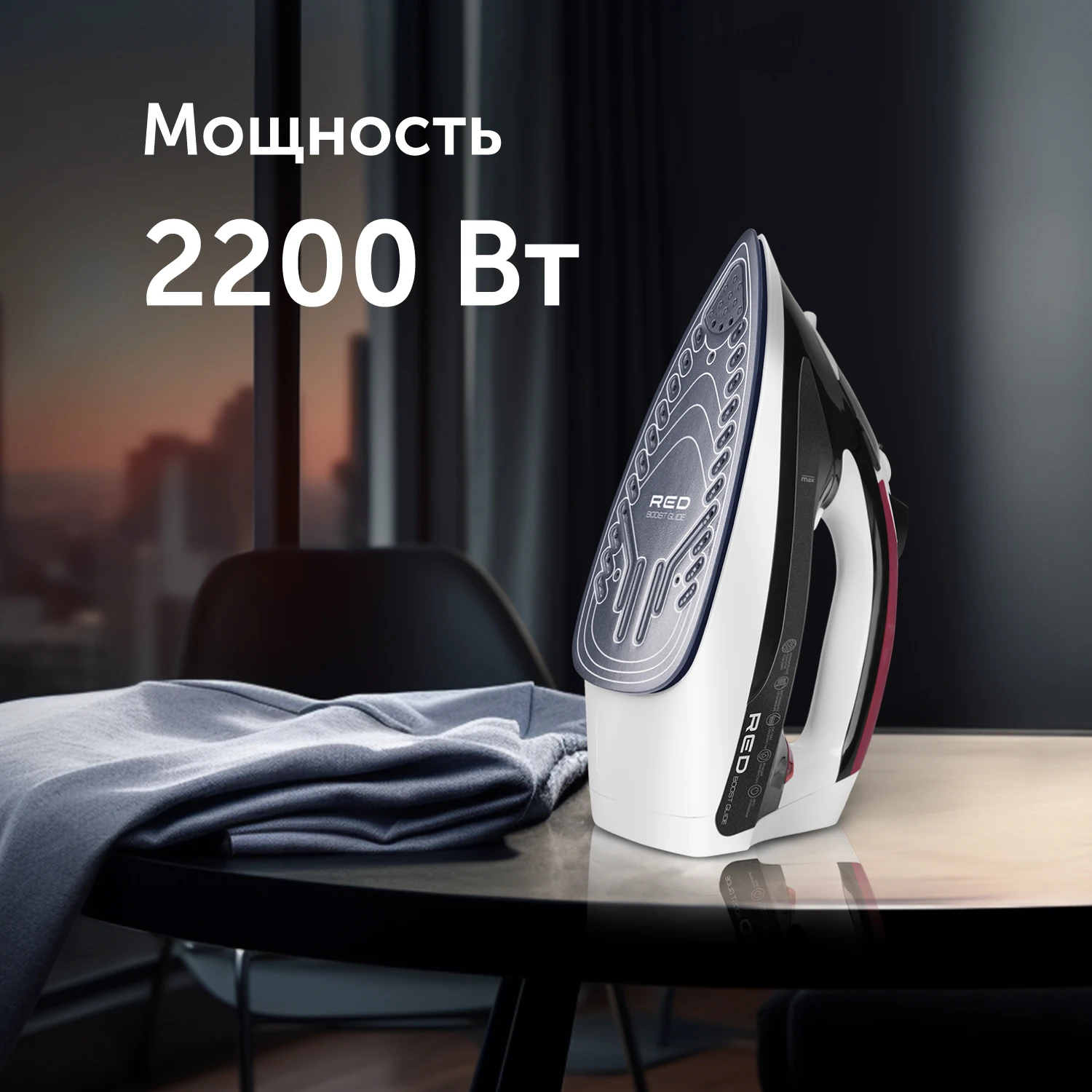 RED SOLUTION I281 — стильный и мощный утюг, с которым глажка из рутины станет приятным и быстрым занятием. Мощность 2200 Вт и функция «Паровой удар» помогут справится с заломами любой сложности даже на самой плотной ткани. Подошва с керамическим покрытием позаботится о сохранности деликатных тканей. Модель защищена от накипи: специальная кассета смягчает воду, препятствуя образованию налета.