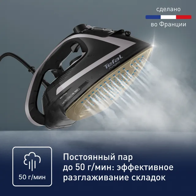 Утюг Tefal Puregliss способен подарить новый опыт повседневного ухода за одеждой и домашним текстилем благодаря своей исключительной силе пара и продвинутым функциям. Высокая мощность 3000 Вт позволяет утюгу быть готовым к работе всего через несколько секунд, а постоянная подача пара 50 г/мин и паровой удар 280 г/мин помогут справиться с самыми упрямыми складками и заломами на любой ткани. Запатентованная система Micro Calc Filter надежно защищает утюг от накипи, продлевая его срок службы и препятствуя образованию пятен на ткани во время глажения.