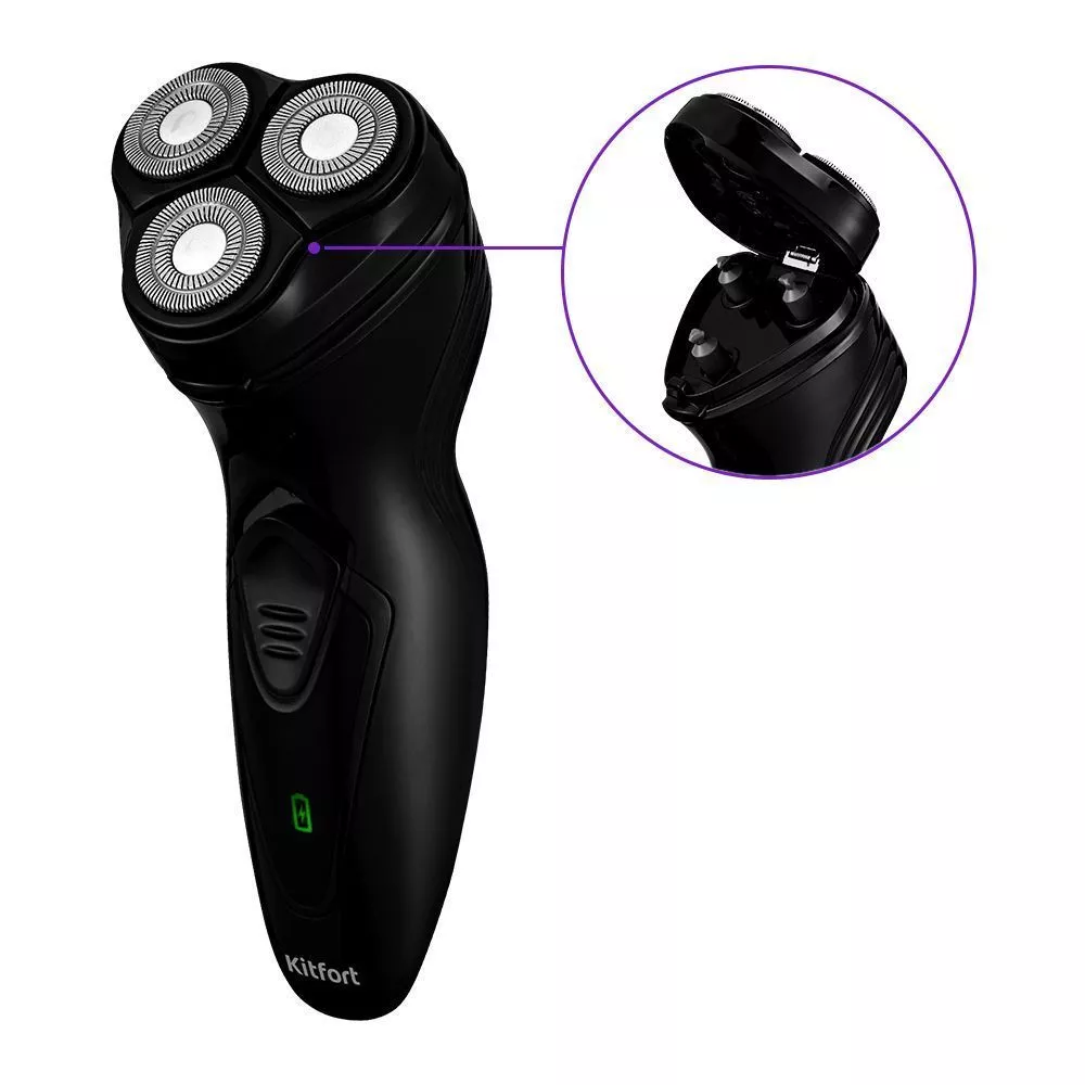 Тип данной бритвы – роторный. Во время работы лезвия, которые закрыты металлическими сетками, синхронно вращаются. Волоски, попадая в перфорацию сеток, срезаются вращающимися лезвиями. Роторные бритвы – отличный выбор для качественного бритья!