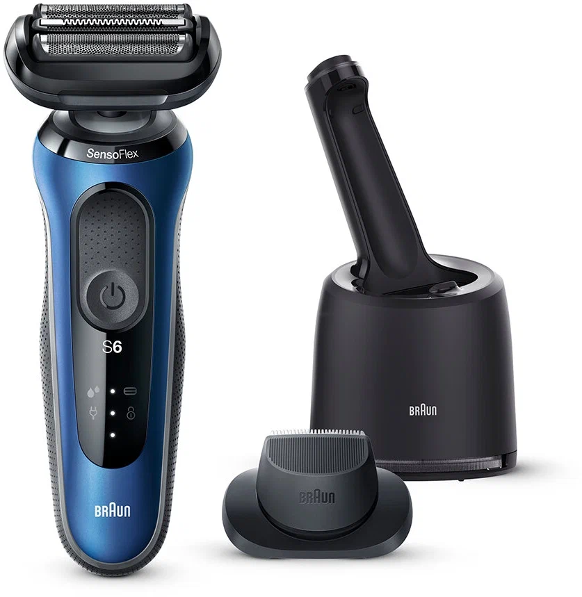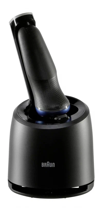 бритва, насадка-триммер, дорожный чехол, станция, щеточка для чистки, зарядное устройство