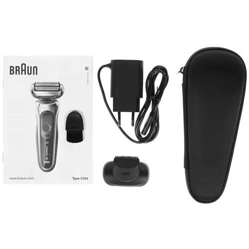 Комплектация:щеточка для чистки, сумка для хранения и переноски, защитная крышка, подставка для зарядки, насадка-триммер, кабель питания