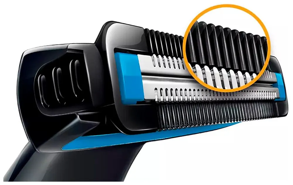 Уникальная система защиты кожи защищает даже самые чувствительные участки тела, позволяя комфортно подстригать волосы толщиной до 0,5 мм без прямого контакта острого края лезвия с кожей.