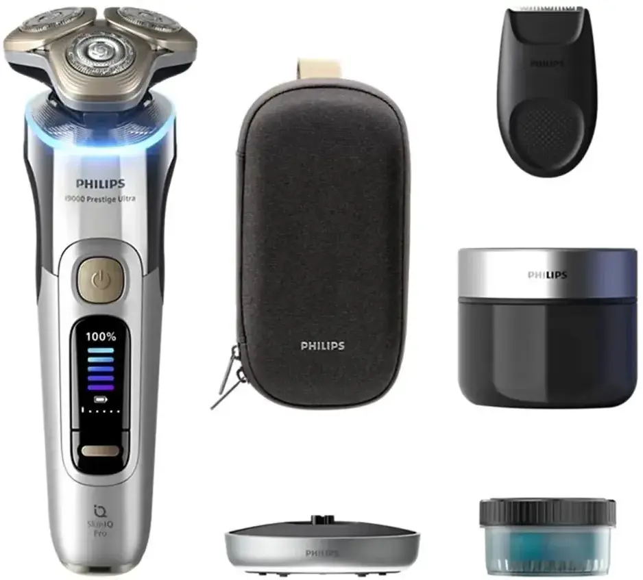 Моющаяся, водонепроницаемая, встроенный прецизионный триммер, регулировка напряжения, датчик плотности волос (технология SkinIQ), быстрая зарядка, индикатор зарядки, индикатор уровня заряда, порт зарядки USB, отсек для сбора волос, блокировка кнопок
