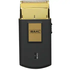 Сеточная электробритва Wahl 07057-016 Gold Edition подходит только для сухого бритья. Устройство может действовать от сети или аккумулятора Ni-MH. Емкости батареи хватает на 45 минут автономной работы.