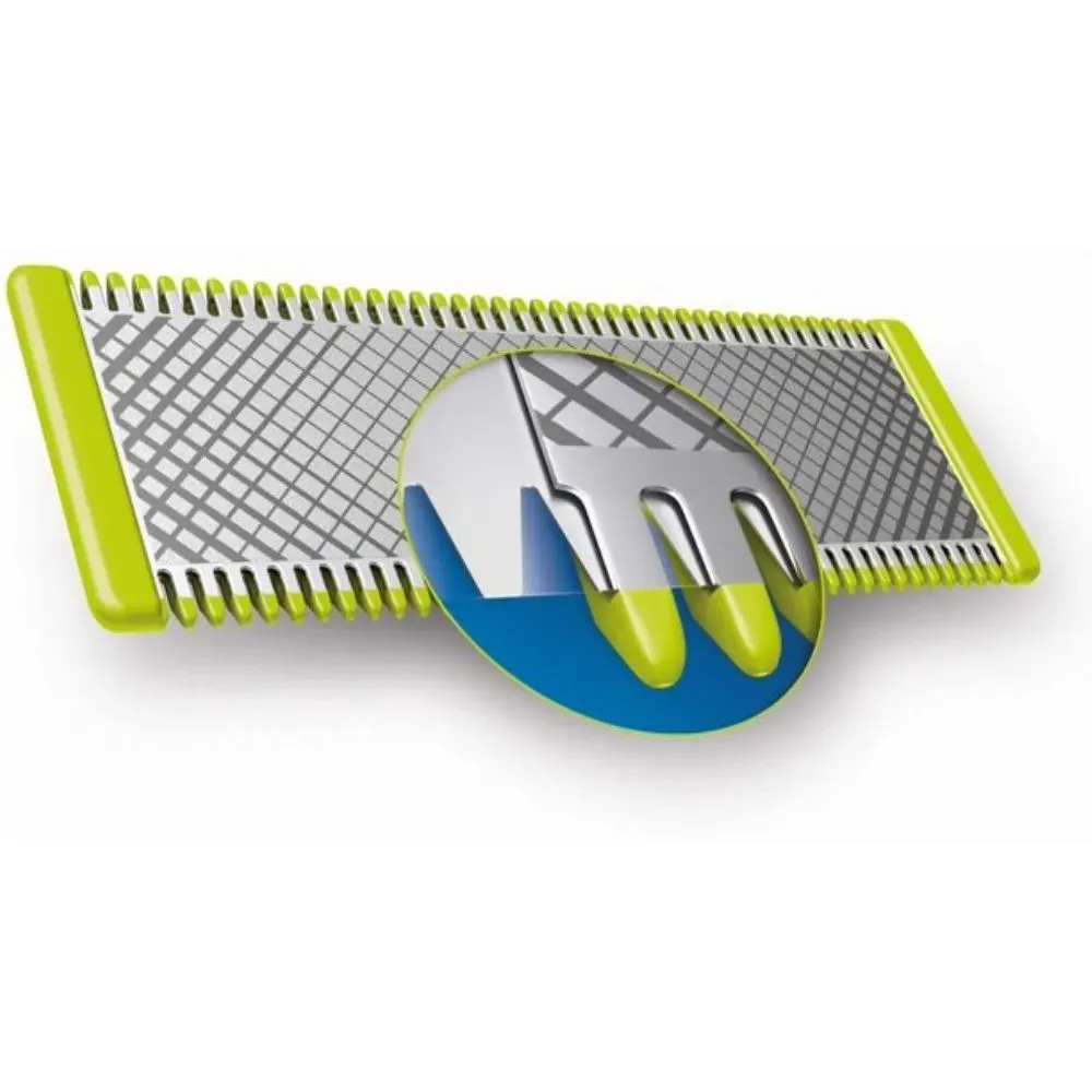 Простота установки и очистки: Сменное лезвие легко заменить и очистить; удалите старое затупившееся лезвие, затем подставьте новое и защелкните его. OneBlade является водостойким. Режущую головку можно промывать прямо под водой, поэтому ее легко очистить.