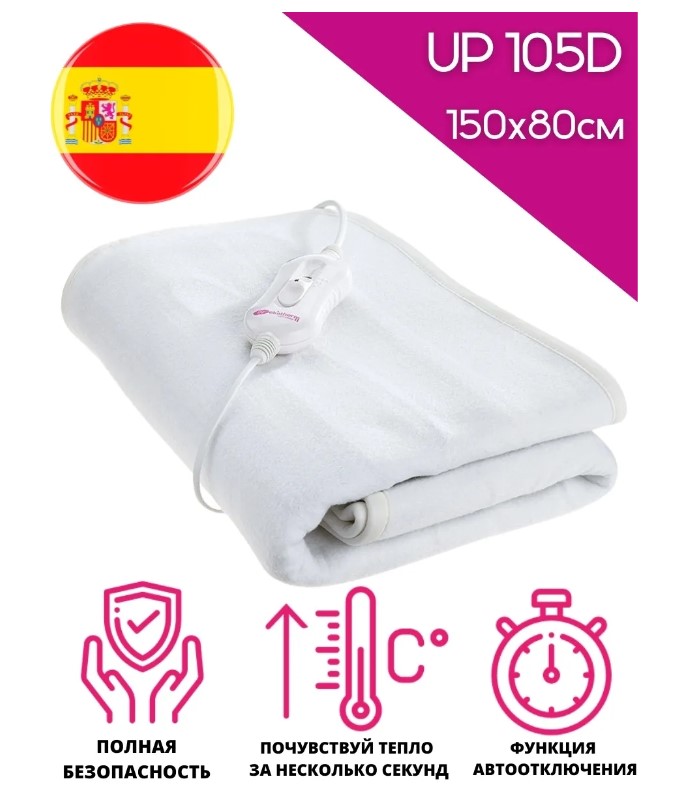 - Односпальная электропростынь 150x80 см.- 3 температурных режима 35°C 45°C 55°C.