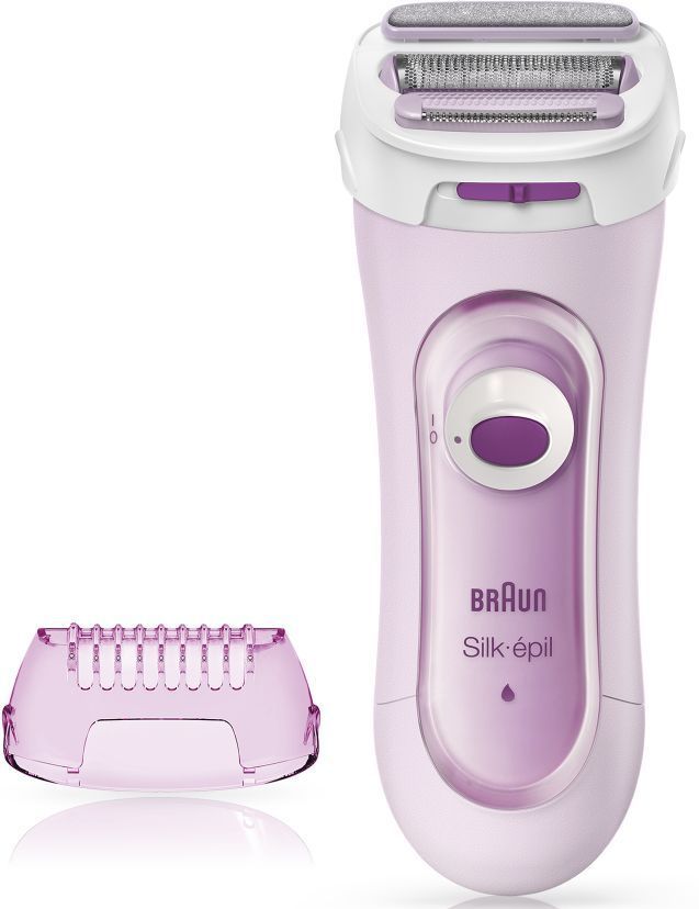 женская проводная электробритва 3-в-1 для ног, подмышек и зоны бикини с триммером и системой пилинга. Насадка для пилинга мягко отшелушивает кожу во время бритья. Закругленная бритвенная головка подстраивается под контуры тела. Насадка-триммер мягко удаляет волосы на чувствительных участках.