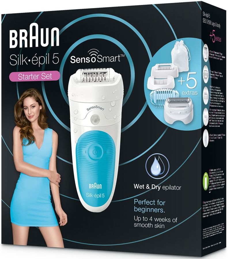 Описание Набор для начинающих Braun Silk-epil 5 Wet & Dry удаляет короткие волосы, что не под силу воску, обеспечивая гладкость кожи до 4 недель. Идеально подходит для новых пользователей. Инновационная технология SensoSmart управляет вашей эпиляцией, регулируя силу нажатия.