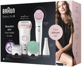 Описание Премиум-набор для эпиляции и ухода за лицом и телом. Предназначен для пилинга, эпиляции, бритья, стайлинга, тонизирования, очищения и нанесения крема и макияжа. В комплект входит щёточка для глубокого пилинга, мягкая щёточка для пилинга, бритвенная головка, насадка для глубокого массажа.