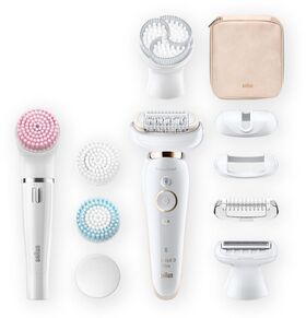 Особенности 8 насадок: бритвенная насадка для тела, насадка для высокочастотного массажа, насадка для более близкого контакта с кожей, щеточка для нормальной кожи, щеточка для чувствительной кожи, щеточка для пилинга, очищающая щеточка для лица, насадка-триммер, насадка для лица, насадка-спонж