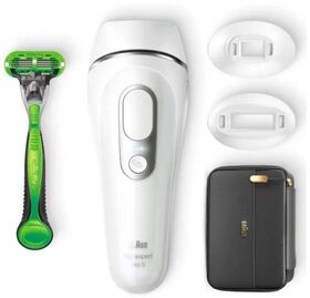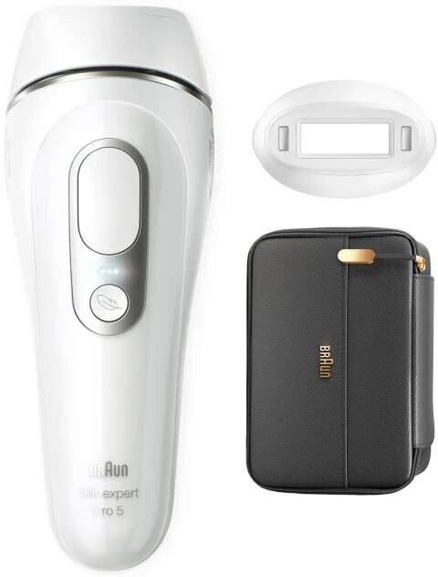 Фотоэпилятор, насадки, бритва, блок питания с сетевым шнуром, косметичка