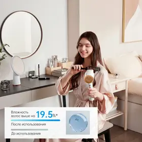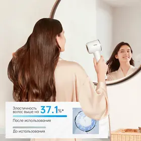 автоматическое вращение насадки, ионизация, независимая регулировка нагрева и воздушного потока, подача холодного воздуха