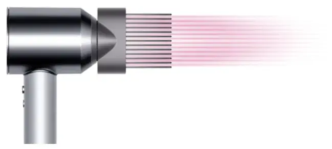 Концентратор Dyson Professional с более широким и сфокусированным соплом и прохладными краями направляет поток воздуха для точной укладки.