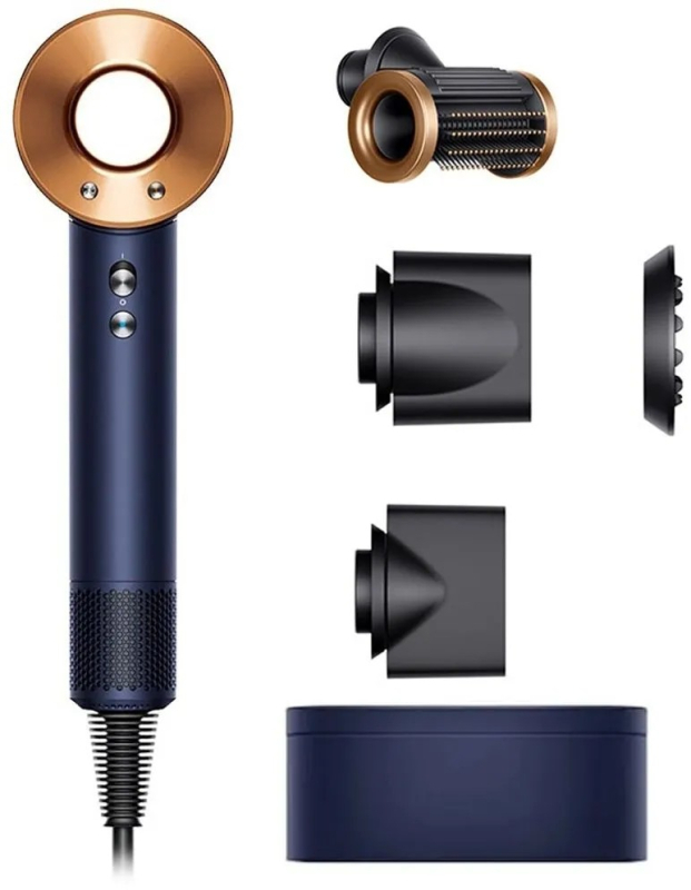 интеллектуальная система контроля температуры исходящего воздуха; мощный двигатель с цифровым управлением Dyson V9, магнитные насадки для укладки; температура воздуха от 28°C до 100°C; скорость воздушного потока: 41 лит./сек.; температурные режимы: 28, 60, 80, 100°C; максимальный уровень шума: 77 дБ