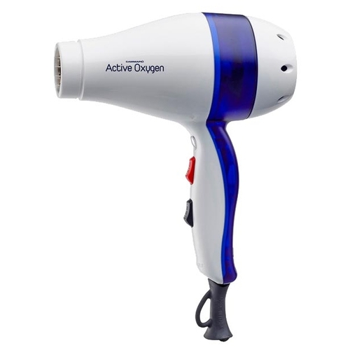 Фен Gamma Piu Active Oxygen New — лёгкий и компактный фен с мощным мотором. Эта модель позволит быстро высушить и уложить волосы в домашних условиях, его также удобно брать с собой в поездки. Модель имеет стильный современный дизайн, небольшой вес. Органы управления удобно расположены на ручке, на ней также предусмотрено кольцо для подвешивания. Для защиты волос от травмирования при попадании в вентилятор на впускном отверстии предусмотрен съёмный металлический фильтр. Вы можете выбирать один из 3 температурных режимов и один из 2 скоростных режимов, наиболее подходящие для типа волос, чтобы излишне их не пересушивать. Модель оснащена инновационной озонирующей системой «активный кислород» со специальной лампой, улучшающей состояние волос и защищающей их. Предусмотрены также режим подачи холодного воздуха (возможно моментальное охлаждение) и ионизатор для защиты волос. Фен отличается очень тихой работой.