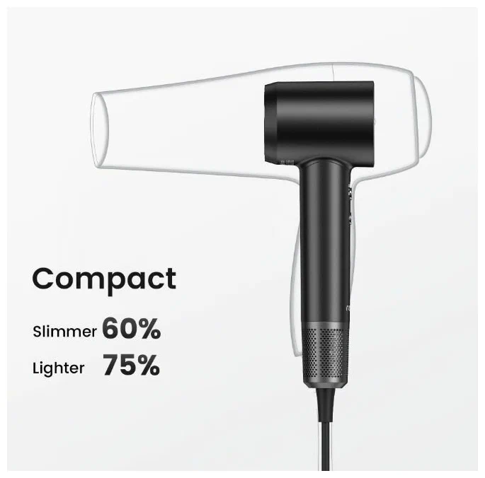 Фен Laifen SWIFT с ионизатором высушивает пряди бережно, не повреждая структуру волос. Благодаря функциям отрицательных ионов Laifen Swift защищает волосы, устраняет пушистость, придает локонам гладкость и блеск. В то же время продвинутая технология термо-контроля не допускает перегрева и ограждает пряди от экстремальных тепловых повреждений, помогая сохранить красоту волос. Теперь фен Laifen SWIFT никого не разбудит – уровень шума составляет всего 59 дБ при максимальной мощности, поэтому можно спокойно сушить волосы, не опасаясь вызвать дискомфорт у близких или напугать шумом питомца. Во время работы этого фена можно даже вести разговор с друзьями или семьей – мягкий звук технологичной новинки не помешает беседе. Эргономичный дизайн и небольшой размер делают фен Laifen SWIFT идеальным для путешествий: продукт отлично поместится даже в маленький чемодан или небольшую дорожную сумку. При этом владельцу фена не придется беспокоиться из-за короткого провода: длина 1,8 м позволяет свободно передвигаться по комнате во время сушки волос. Laifen позаботился не только о технической составляющей, но и об эстетике. Фен Laifen SWIFT представлен в лаконичном, эргономичном дизайне. Стильный фен для волос от Laifen с высокой скоростью сушки и низким уровнем шума – это идеальный баланс идеального пользовательского опыта и доступной цены.